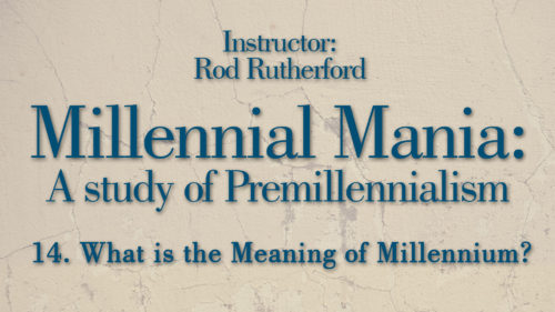 According to premillennialists, Christ will return to make Jerusalem the political and religious capital of the world. During this time, He will supervise the rebuilding of the world and there will be no wars, no sickness, and no natural disasters.… Length: 39:08
